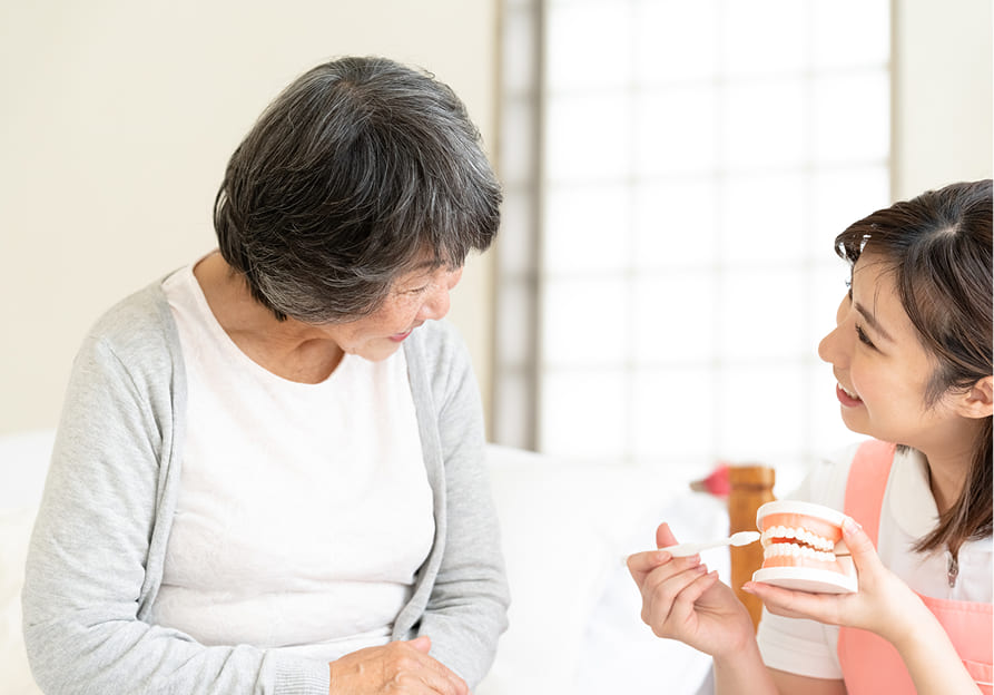 口腔ケアは、誤嚥性肺炎の予防や食事のしやすさ、生活の質の維持に非常に重要です。